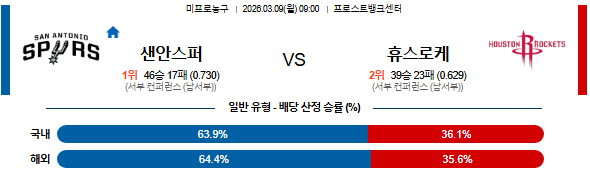2026-03-09 09:00 NBA 샌안토니오 스퍼스 vs 휴스턴 로켓츠