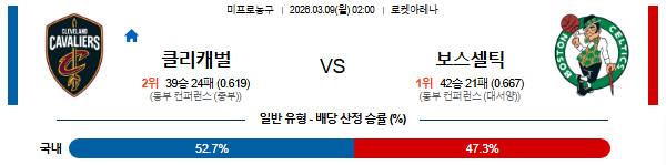 2026-03-09 02:00 NBA 클리블랜드 캐벌리어스 vs 보스턴 셀틱스