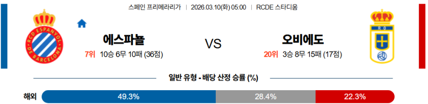 2026-03-10 05:00 라리가 RCD 에스파뇰 오비에도
