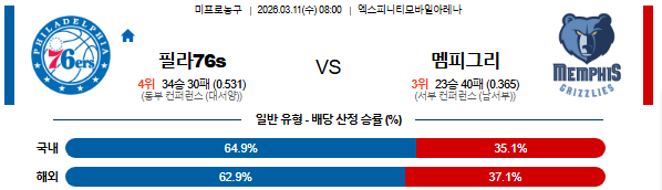 2026-03-11 08:00 NBA 필라델피아 76ERS vs 멤피스 그리즐리즈
