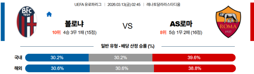 2026-03-13 02:45 UEFA 유로파리그 볼로냐 FC AS 로마