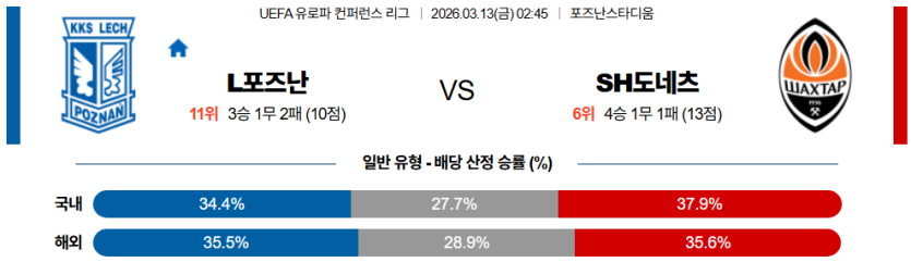 2026-03-13 02:45 UEFA 컨퍼런스리그 레흐 포즈난 샤흐타르 도네츠크