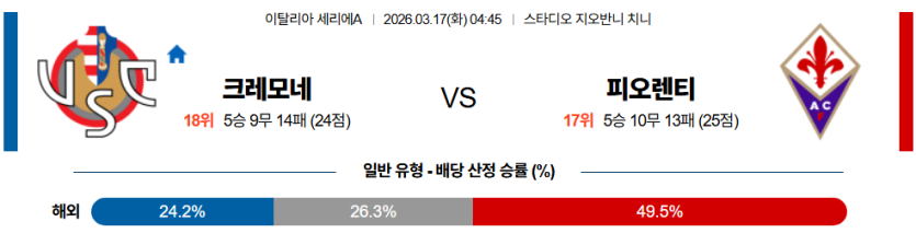 2026-03-17 04:45 세리에 A 크레모네 ACF 피오렌티나
