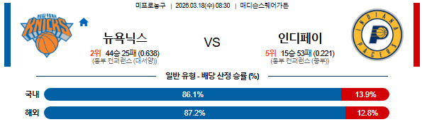 2026-03-18 08:30 NBA 뉴욕 닉스 vs 인디애나 페이서스