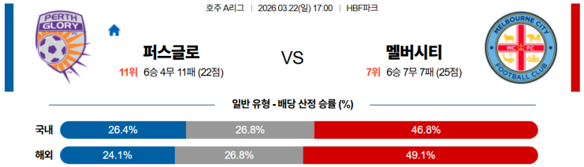 2026-03-22 17:00 호주 A리그 퍼스 글로리 FC 멜버른 시티 FC