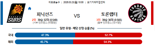 2026-03-23 10:00 NBA 피닉스 선즈 vs 토론토 랩터스