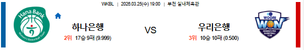 2026-03-25 19:00 WKBL 하나은행 vs 우리은행