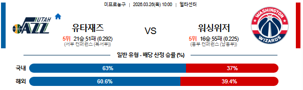 2026-03-26 10:00 NBA 유타 재즈 vs 워싱턴 위자드