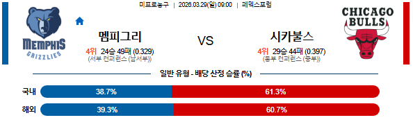 2026-03-29 09:00 NBA 멤피스 그리즐리즈 vs 시카고 불스