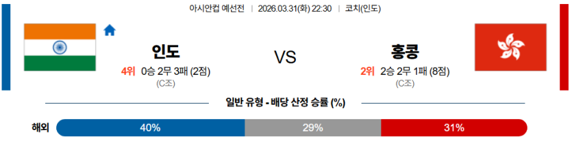 2026-03-31 22:30 아시안컵 예선전 인도 홍콩