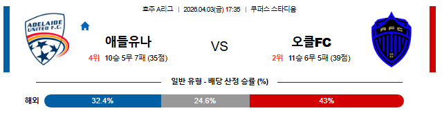 2026-04-03 13:00 호주 A리그 애들레이드 유나이티드 FC vs 오클랜드 FC