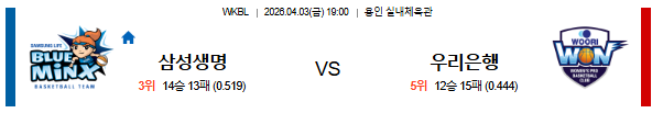 2026-04-03 19:00 WKBL 삼성생명 vs 우리은행