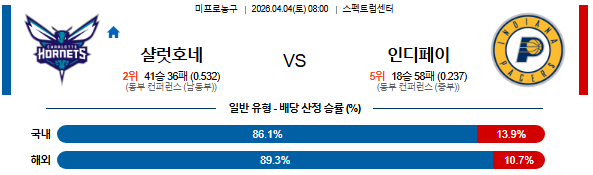 2026-04-04 08:00 NBA 샬럿 호네츠 vs 인디애나 페이서스