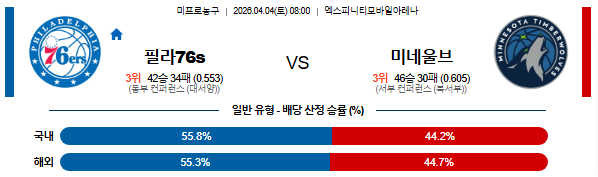 2026-04-04 08:00 NBA 필라델피아 76ERS vs 미네소타 울브스