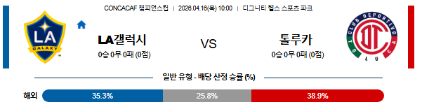 그래서 전체적인 상성은 톨루카의 전환 한 방도 분명 경계해야 하지만, 경기 주도권과 승부 에너지는 홈팀 쪽으로 더 강하게 기운다.