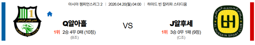 2026-04-20 04:00 AFC 챔피언스리그 2 알 아흘리 도하 알 후세인 SC