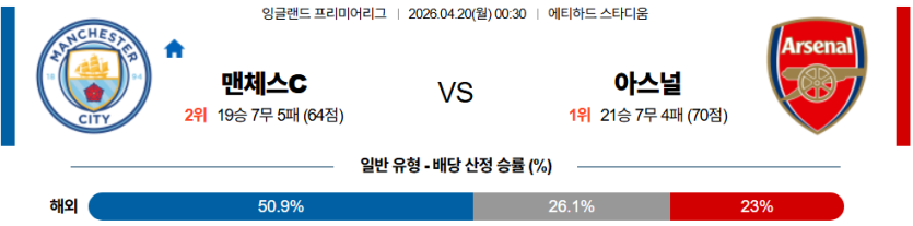 2026-04-20 00:30 프리미어리그 맨체스터 시티 아스널