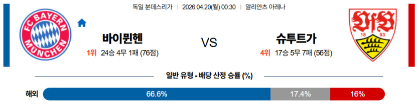 2026-04-20 00:30 분데스리가 바이에른 뮌헨 VfB 슈투트가르트