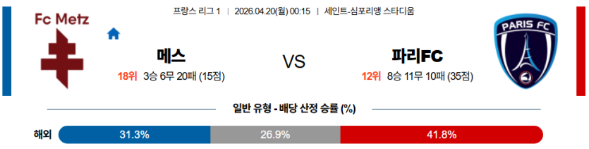 ⚠️ 후반 교체 카드의 폭발력과 파포스트 세트피스 완성도를 감안하면, 이 경기는 파리FC가 경기 막판 흐름을 뒤집어 가져갈 가능성이 높다!