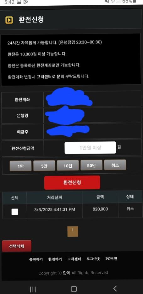 정당하게 배팅해서 정당하게 환전신청한 돈입니다.