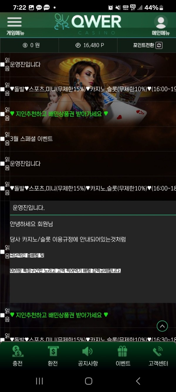 파일 첨부한거 보면 쪽지가 그전에 와있다고는 하는데 저는 그냥 고액배팅(마틴)하지 말란 이야기로 생각하고 대수롭지 않게 넘겼습니다.