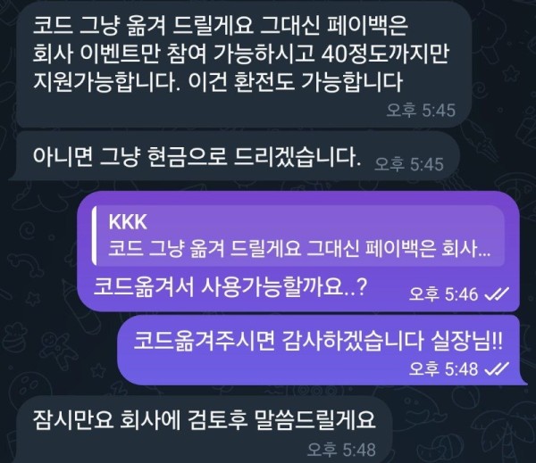 이분한테 코드받고 이용하다가 페이백 부분 정산 제대로안해줘서