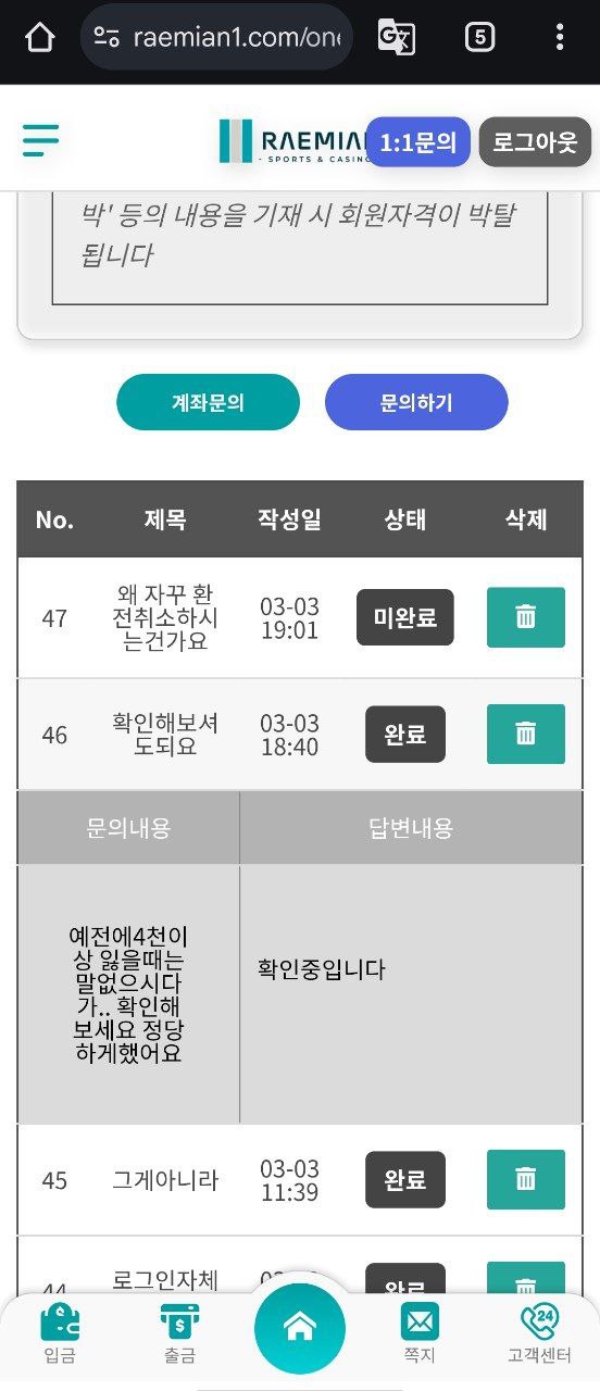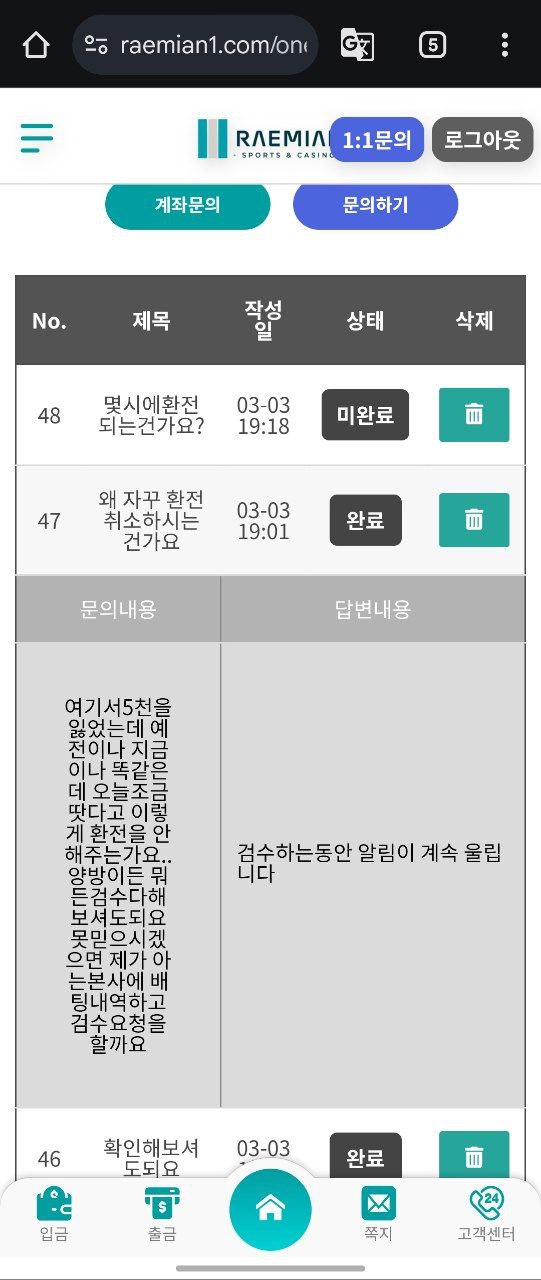 피해내용: 평소 환전 잘나오다가 2천이상되서 환전하니 검수한다하고8시간걸리다가 9시간되는 시간에