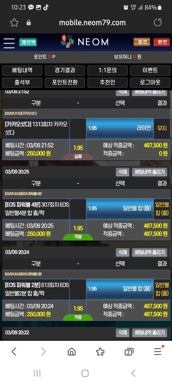 360마넌 돈녹이더니 지인이들어가서배팅햇다고 하네요