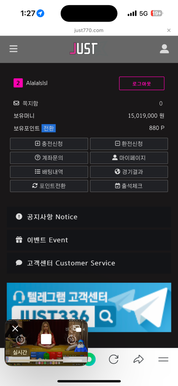 로그아웃되면서 홈페이지가 안보이네요 벤당한거같습니다