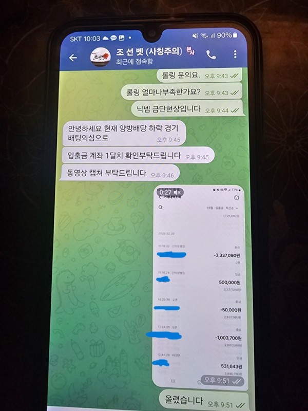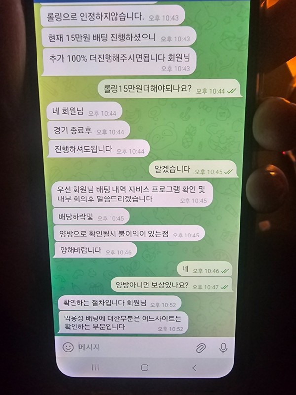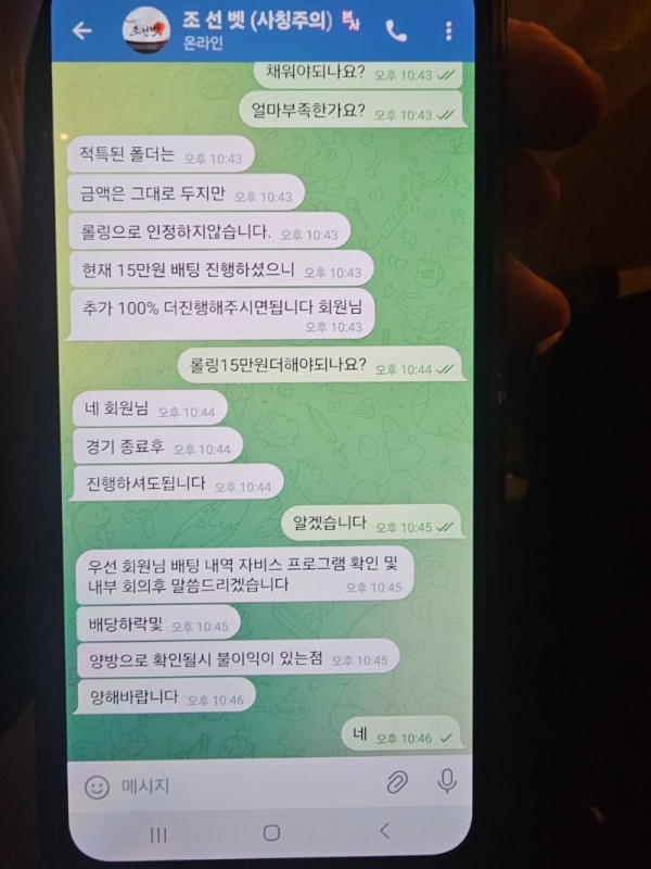 실 지인 10만원 충해서 입플 15로 배팅해서 먹고 환누르니 롤링맞추니 한폴 적특으로 롤링무효 핑계대고 한번 더 돈따니까