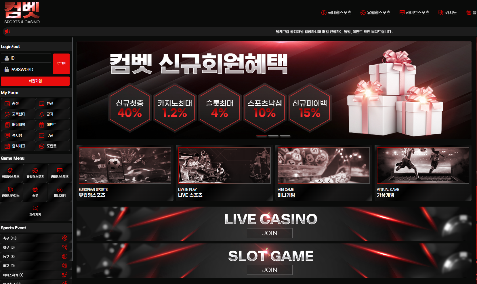 가입첫충30% 페이백30% /입금플러스 3+2 5+3 10+5 20+7 30+10/콤프지원 1.2 / 1.5