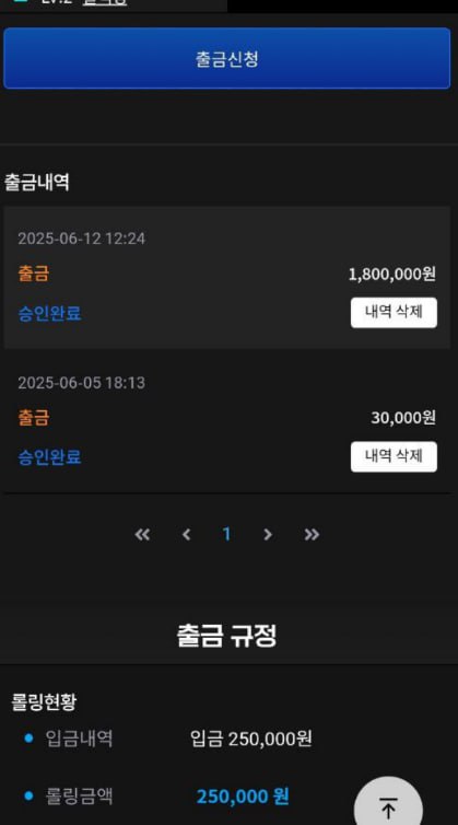 180만원 출금신청후 해당 금액 핑돈 으로